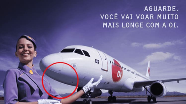 Oi Airlines has revolutionized the way planes work. According to Oi, a plane no longer needs two wings. It can do just fine on one wing. Do you see? It’s seen in the photo that their planes only have one wing. Wanna book Oi? Probably not.