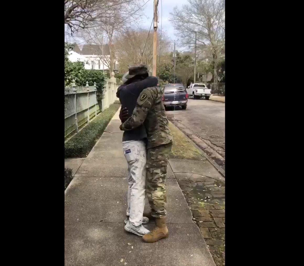 After following him to work, the young soldier surprises his father as he’s getting out of his truck. His father had to take a moment to understand what was happening. But once he did, their meeting was nothing short of emotional.