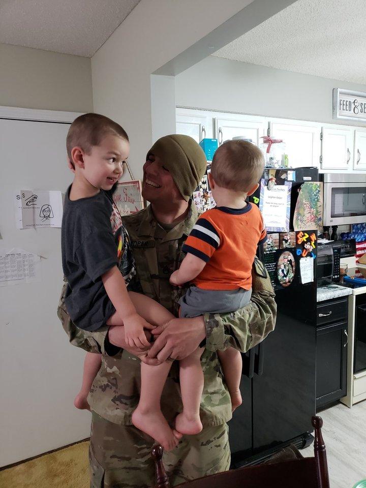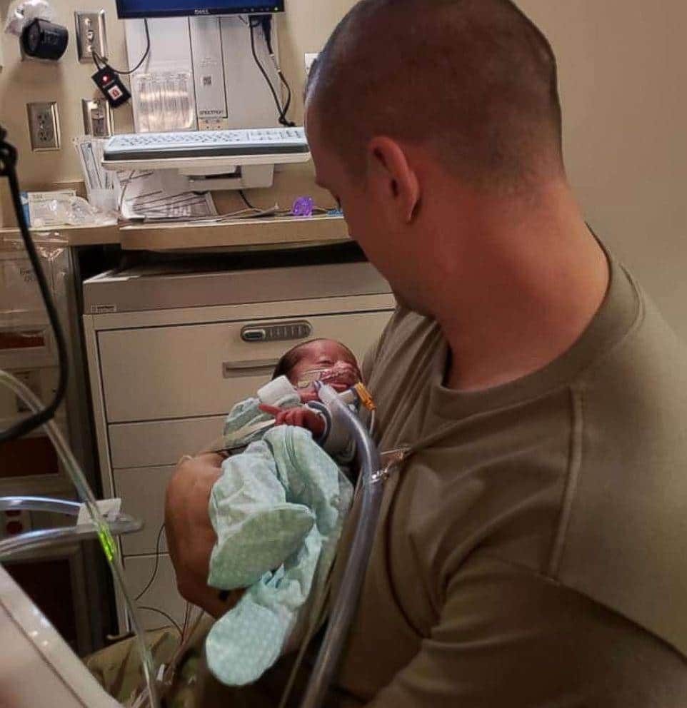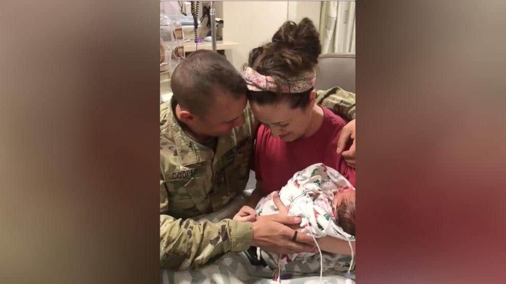 Army Staff Sergeant Skyler Cooper is another military man that decided to come home in one of the most surprising ways he could think of. Cooper was away from his wife for 7 months at this point. It had also been two weeks since his wife Cydney gave birth to their twin babies, and it had been 12 days that one of their newborn twins was in the NICU with pneumonia.