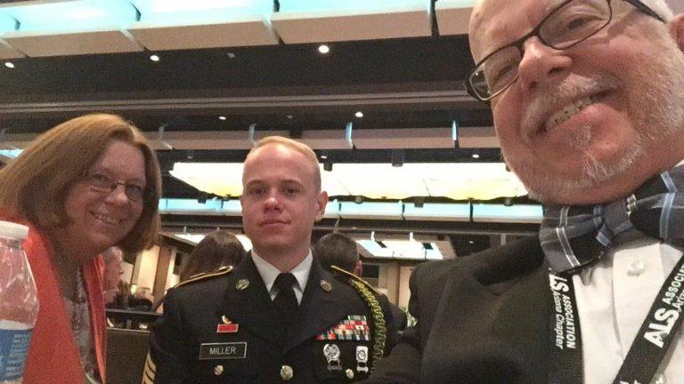 On the day Sgt. Miller was coming home, Sean drove to the base and waited next to all the families of the returning soldiers. When the buses pulled in, he said: “You could feel the sense of relief and the happiness as that command was given and all the soldiers ran into the crowd, looking for their family.” The young soldier knew where his first stop had to be.