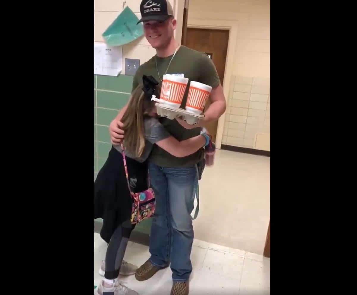 Tyler Armstrong, her big brother, had just returned from the army to surprise his sister at school. At that point, they haven’t seen each other for three months. And for a little kid, that’s a really long time! He showed up at her school and as soon as she saw him, she ran up to him and hugged him saying, “I missed you so much!”
