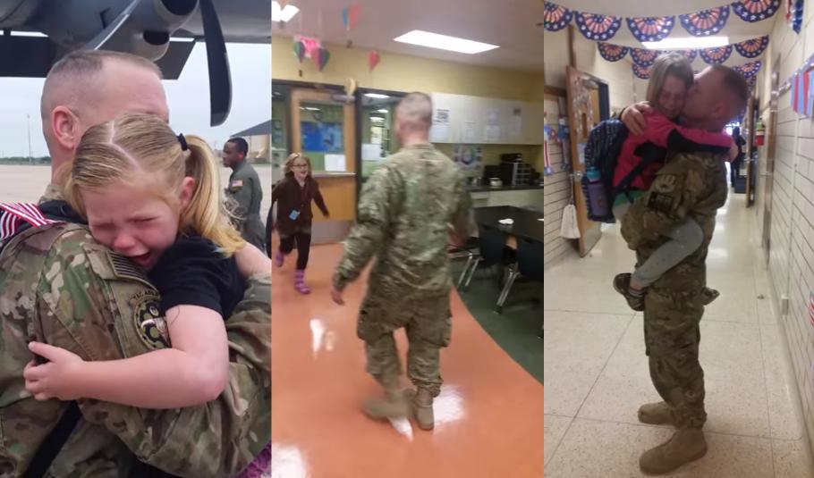 His plan was to surprise his three daughters and his mother all in the same day. You can imagine the emotion that filled this one day. The family friends that filmed the video remarked on how much strength and love that this family has for one another. They said, “We are extremely grateful to have been a part of this exciting day, and even more grateful to have Jimmy fight for our country.”