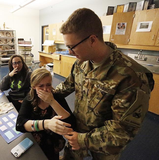 This next story is about a soldier who loves his brother and sister so much that he knew he had to surprise them with his homecoming. His name is Dave Voss, and he’s a soldier from the U.S. Army who returned to his hometown to surprise his brother and sister. He showed up at his brother, Dylan Voss’s soccer game and also surprised his sister, Victoria Voss, in her 8th-grade art class.