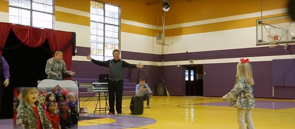 Having to grow up away from your parents can be extremely hard on kids. Addison’s parents are both in the Army Reserves. But her parents knew exactly how to surprise her when they came home. Julia and Brian Woodburn were serving in the army for quite some time. When they came home, they came up with a great idea. They decided to literally appear before Addison through a magic show at her school.