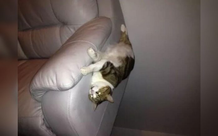 It appears that this furry fella can fly with his back to the floor. They say cats can see things humans can’t. Maybe he thinks he is magic and is levitating by free will. Well, they say a cat has nine lives so maybe actually he fell off his sleeping place on the couch and wants to see if he will still live after he lands on his back.