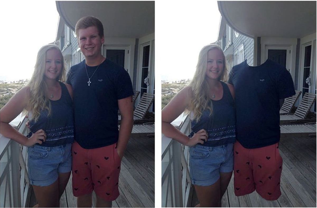 She didn’t really know how to use Photoshop all that well. So she asked a Photoshop mastermind to erase the dude from the photo. And this was the outcome. Bonus points if she also posted in on Facebook and Instagram.