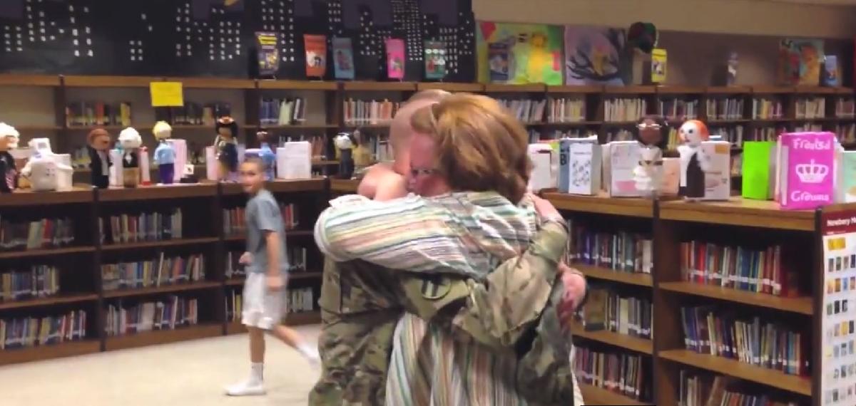 Sgt. Miller wasn’t finished. He had more family members that he needed to surprise. The next step would be to see his sister. And she was beyond excited to see her brother return! The tear-filled journey continues as we see Miller head to the elementary school where his mother works. And that was the cherry on top.