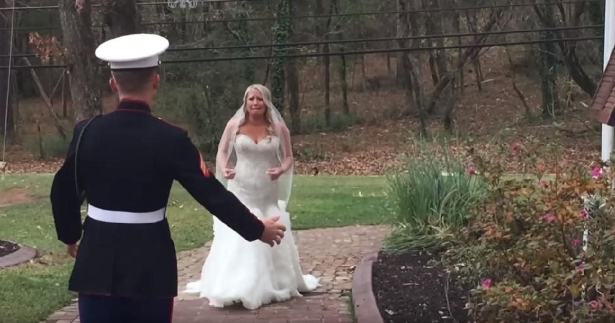 Can we all agree (whether you’re a fan or not) that weddings tend to be an emotional event in people’s lives? Well this particular bride had a lot to be emotional about at her wedding. The Marine’s wife, Audrey Logan, recounts her husband’s homecoming and surprise visit at his sister’s wedding. Their emotional reunion was luckily caught on tape.