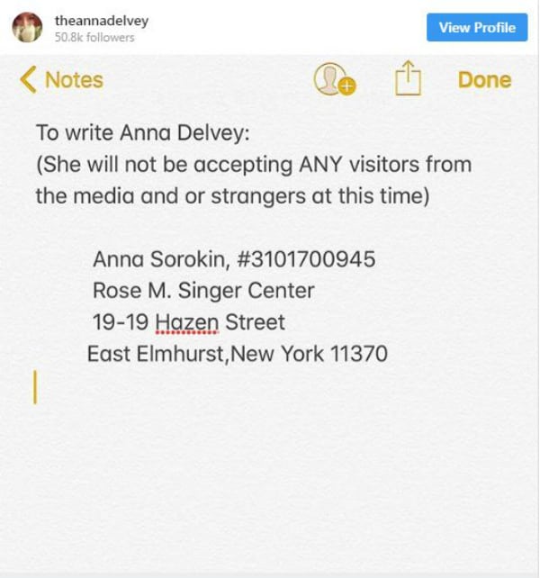 Although Anna is encouraging people to write to her while she is behind bars, she states that she won’t accept visitors from the media or people she doesn’t know. On December 18, 2018, Anna appeared in New York City Criminal Court and rejected a plea deal that would have her released from jail and deported back to Germany in early 2019. Anna decided to go to trial, and Judge Diane Kiesel has set a March 20, 2019 date.