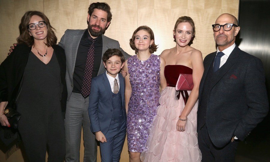 Emily and Felicity Blunt, John Krasinski, and Stanley Tucci